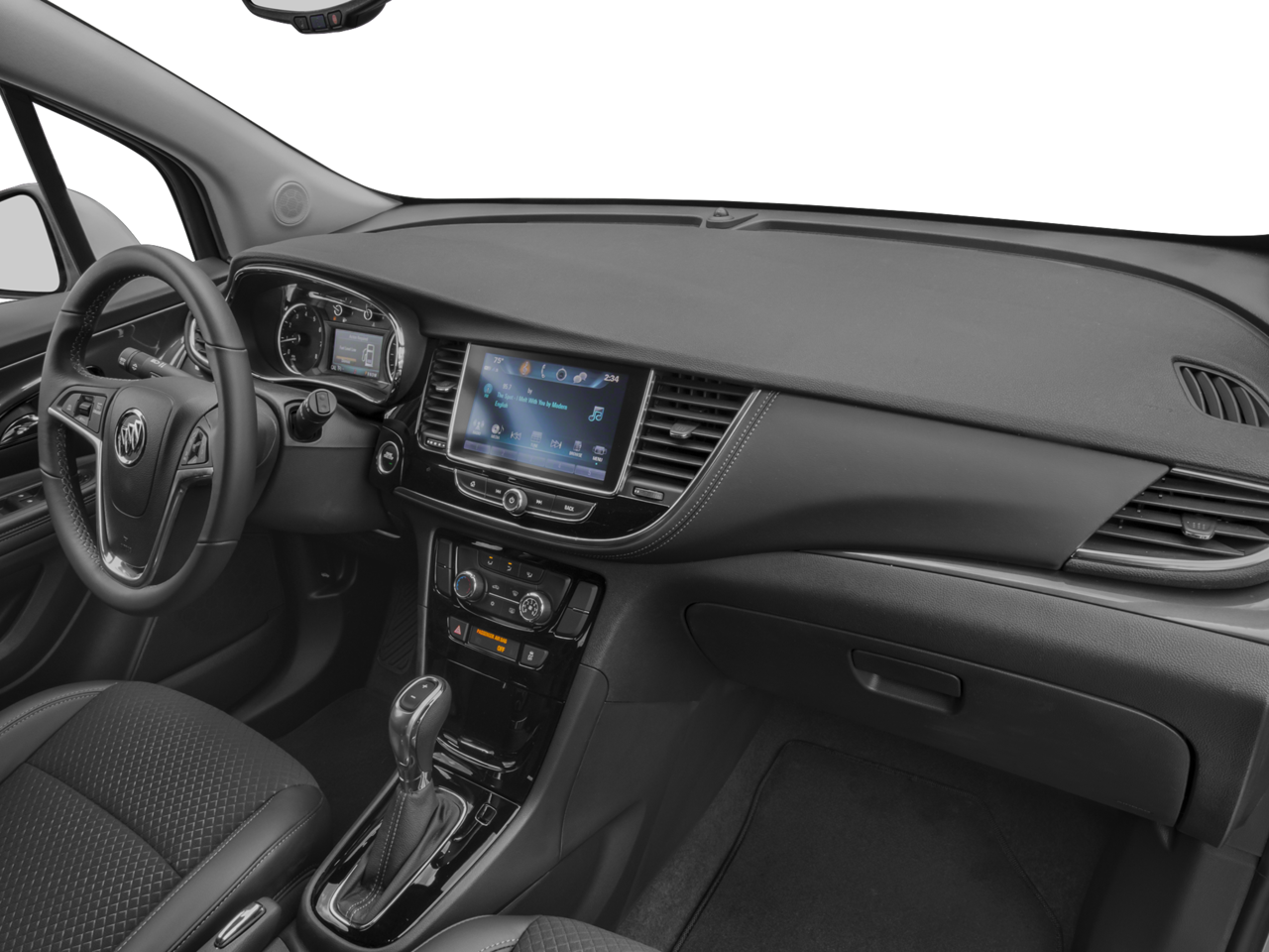 2-Way Manual Front Passenger Seat Adjuster, 3.53 Final Drive Axle Ratio, 4-Wheel Disc Brakes, 6 Speakers, 6-Way Power Driver Seat Adjuster, ABS brakes, Air Conditioning, Alloy wheels, AM/FM radio: SiriusXM, Apple CarPlay/Android Auto, Black Carbon Metallic Lower Exterior Accent Color, Brake assist, Bumpers: body-color, Cloth w/Leatherette Seat Trim, Compass, Delay-off headlights, Driver door bin, Driver vanity mirror, Driver's Seat Mounted Armrest, Dual front impact airbags, Dual front side impact airbags, Electronic Stability Control, Emergency communication system: OnStar Guidance, Exterior Parking Camera Rear, Front anti-roll bar, Front Bucket Seats, Front License Plate Bracket, Front reading lights, Front wheel independent suspension, Fully automatic headlights, Heated door mirrors, Illuminated entry, Knee airbag, Low tire pressure warning, Occupant sensing airbag, Outside temperature display, Overhead airbag, Panic alarm, Passenger door bin, Passenger vanity mirror, Power door mirrors, Power driver seat, Power steering, Power windows, Preferred Equipment Group 1SB, Premium audio system: IntelliLink, Radio data system, Radio: Buick IntelliLink AM/FM Stereo, Rear seat center armrest, Rear side impact airbag, Rear window defroster, Rear window wiper, Remote keyless entry, Ride & Handling Suspension, Roof rack: rails only, Security system, SiriusXM Satellite Radio, Speed control, Speed-sensing steering, Split folding rear seat, Spoiler, Steering wheel mounted audio controls, Tachometer, Telescoping steering wheel, Tilt steering wheel, Traction control, Trip computer, Turn signal indicator mirrors, Variably intermittent wipers, Wheels: 18 Aluminum (DISC), Wheels: 18 Machined-Face Alloy.