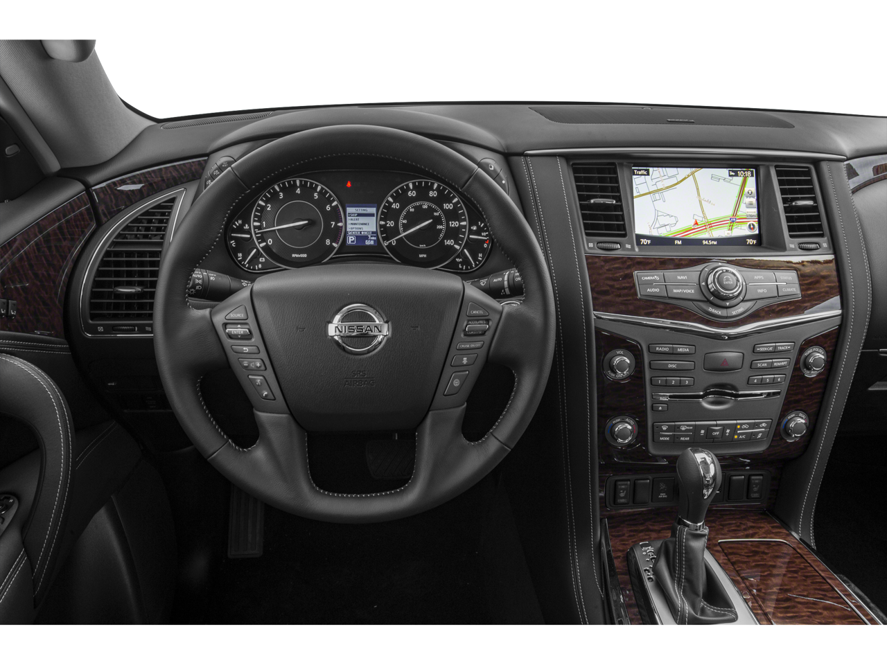 4WD, 13 Speakers, 20 Painted Alloy Wheels, 3rd Row Carpeted Floor Mats - Bench Seat, 3rd row seats: split-bench, 4-Wheel Disc Brakes, ABS brakes, Air Conditioning, Alloy wheels, AM/FM radio: SiriusXM, Anti-whiplash front head restraints, Auto tilt-away steering wheel, Auto-dimming door mirrors, Auto-dimming Rear-View mirror, Auto-leveling suspension, Automatic temperature control, Axle Ratio: 2.94, Brake assist, Bumpers: body-color, CD player, Delay-off headlights, Driver door bin, Driver vanity mirror, Dual front impact airbags, Dual front side impact airbags, DVD-Audio, Electronic Stability Control, Emergency communication system: NissanConnect Services, Exterior Parking Camera Rear, Four wheel independent suspension, Front anti-roll bar, Front Bucket Seats, Front Center Armrest, Front dual zone A/C, Front fog lights, Front reading lights, Fully automatic headlights, Garage door transmitter: HomeLink, Heated door mirrors, Heated Front Bucket Seats w/Power Driver's Memory, Heated front seats, Illuminated entry, Leather Shift Knob, Leather-Appointed Seat Trim, Low tire pressure warning, Memory seat, Navigation System, Occupant sensing airbag, Outside temperature display, Overhead airbag, Overhead console, Panic alarm, Passenger door bin, Passenger vanity mirror, Power door mirrors, Power driver seat, Power Liftgate, Power passenger seat, Power steering, Power windows, Radio data system, Radio: AM/FM/SXM/CD/MP3/HD, Rain sensing wipers, Rear air conditioning, Rear anti-roll bar, Rear reading lights, Rear seat center armrest, Rear window defroster, Rear window wiper, Reclining 3rd row seat, Remote keyless entry, Security system, Speed control, Speed-sensing steering, Speed-Sensitive Wipers, Split folding rear seat, Spoiler, Steering wheel memory, Steering wheel mounted audio controls, Tachometer, Telescoping steering wheel, Tilt steering wheel, Traction control, Trip computer, Turn signal indicator mirrors, Variably intermittent wipers, Voltmeter, 4WD.
