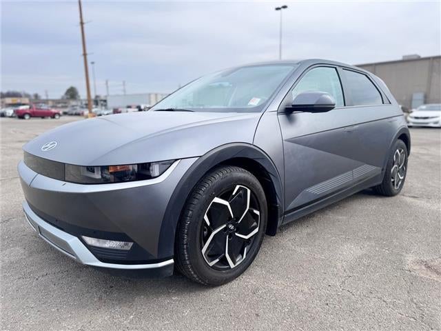 Shooting Star (Matte Gray) 2023 Hyundai IONIQ 5 SEL RWD 4D Sport Utility Electric Motor 1-Speed Automatic 4-Wheel Disc Brakes, 4.706 Axle Ratio, 6 Speakers, ABS brakes, Air Conditioning, Alloy wheels, AM/FM radio: SiriusXM, Apple CarPlay & Android Auto, Auto High-beam Headlights, Auto-dimming Rear-View mirror, Automatic temperature control, Bodyside moldings, Brake assist, Bumpers: body-color, Cargo Net, Carpeted Floor Mats, Delay-off headlights, Driver door bin, Driver vanity mirror, Dual front impact airbags, Dual front side impact airbags, Electronic Stability Control, Emergency communication system: Blue Link Connected Car Service (3-year complimentary subscription), First Aid Kit, Four wheel independent suspension, Front anti-roll bar, Front Bucket Seats, Front Center Armrest w/Storage, Front dual zone A/C, Front reading lights, Fully automatic headlights, Garage door transmitter: HomeLink, H-Tex Leatherette Seating Surfaces, harman/kardon Speakers, Heated door mirrors, Heated Front Bucket Seats, Heated front seats, Heated steering wheel, Illuminated entry, Leather steering wheel, Low tire pressure warning, Mudguards, NAVIGATION, Occupant sensing airbag, Option Group 01, Outside temperature display, Overhead airbag, Overhead console, Panic alarm, Passenger door bin, Passenger vanity mirror, Power door mirrors, Power driver seat, Power Liftgate, Power steering, Power windows, Radio: AM/FM/SiriusXM/HD Display Audio System, Rear anti-roll bar, Rear reading lights, Rear seat center armrest, Rear window defroster, Remote keyless entry, Security system, Speed control, Speed-sensing steering, Split folding rear seat, Spoiler, Steering wheel mounted audio controls, Telescoping steering wheel, Tilt steering wheel, Traction control, Trip computer, Turn signal indicator mirrors, Up Seatback Cargo Mat, Variably intermittent wipers, Wheels: 19 x 7.5J Aero Alloy.