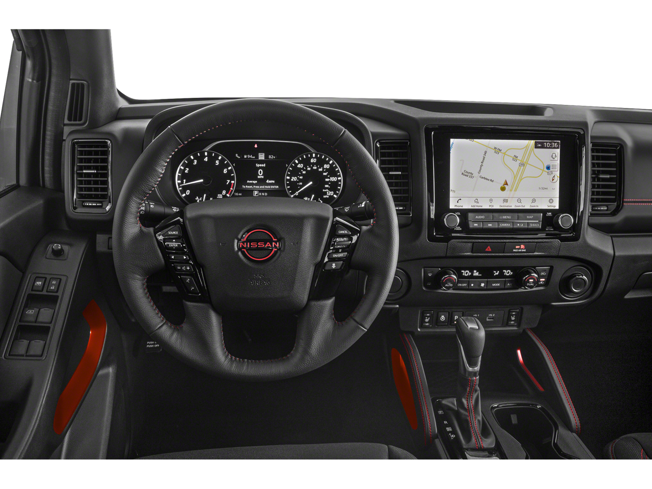 4WD, 17 Accessory Dark Beadlock Style Alloy Wheels, 17 Alloy Wheels, 3.692 Axle Ratio, 4-Wheel Disc Brakes, 6 Speakers, ABS brakes, Air Conditioning, Alloy wheels, AM/FM radio: SiriusXM, Anti-whiplash front head restraints, Automatic temperature control, Brake assist, Bumpers: body-color, Delay-off headlights, Driver door bin, Driver vanity mirror, Dual front impact airbags, Dual front side impact airbags, Electronic Stability Control, Electronic Tailgate Lock, Emergency communication system: NissanConnect Services, Front anti-roll bar, Front Bucket Seats, Front Center Armrest, Front dual zone A/C, Front fog lights, Front reading lights, Front wheel independent suspension, Fully automatic headlights, Heated Steering Wheel, Illuminated entry, Illuminated Kick Plates, Intelligent Around View Monitor (I-AVM), Knee airbag, Leather Shift Knob, Low tire pressure warning, Navigation system: Nissan Navigation with Voice Recognition, Occupant sensing airbag, Off-Road Protection Package, Off-Road Style Step Rails, Overhead airbag, Overhead console, Panic alarm, Passenger door bin, Passenger vanity mirror, Power door mirrors, Power driver seat, Power steering, Power windows, PRO Convenience Package, PRO Embroidered Premium Cloth Seat Trim, PRO-4X Carpeted Floor Mats, PRO-4X Mud Flaps, PRO-4X Premium Package, Radio data system, Radio: SXM/AM/FM/AUX/USB Audio System w/6 Speakers, Rear anti-roll bar, Rear seat center armrest, Rear step bumper, Remote keyless entry, Security system, Speed control, Speed-sensing steering, Split folding rear seat, Steering wheel mounted audio controls, Tachometer, Tilt steering wheel, Tow Package: Hitch, Tow Harness, Traction control, Trip computer, Variably intermittent wipers, Voltmeter, Wireless Charging For Personal Devices, 4WD.
