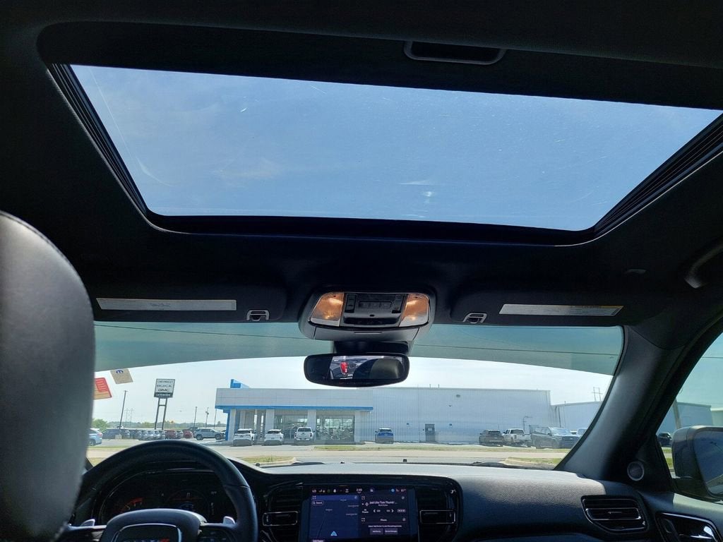 AWD, 115V Auxiliary Power Outlet, 2nd Row Fold/Tumble Captain Chairs, 2nd Row Mini Console w/Cupholders, 2nd Row Seat Mounted Inboard Armrests, 3.09 Rear Axle Ratio, 3rd Row Floor Mat & Mini Console, 3rd row seats: split-bench, 4-Wheel Disc Brakes, 6-Passenger Seating, 7 & 4 Pin Wiring Harness, 9 Speakers, ABS brakes, Adaptive Cruise Control w/Stop, Air Conditioning, Alloy wheels, AM/FM radio: SiriusXM w/360L, Apple CarPlay/Android Auto, Auto High Beam Headlamp Control, Auto-Dimming Exterior Driver Mirror, Auto-dimming Rear-View mirror, Auto-leveling suspension, Automatic temperature control, Black Roof Rails, Blacktop Package, Blind Spot w/Trailer Detection, Brake assist, Bumpers: body-color, Class IV Receiver Hitch, Cloth Bucket Seats w/Shift Insert, Compass, Delay-off headlights, Driver door bin, Driver vanity mirror, Dual front impact airbags, Dual front side impact airbags, Dual Remote USB Port - Charge Only, Electronic Stability Control, Emergency communication system: Dodge Connect, Exterior Mirrors w/Heating Element, Exterior Mirrors w/Memory, Exterior Mirrors w/Supplemental Signals, Floor Console w/Leather Armrest, Four wheel independent suspension, Front anti-roll bar, Front Bucket Seats, Front Center Armrest w/Storage, Front dual zone A/C, Front reading lights, Full Speed Forward Collision Warning Plus, Fully automatic headlights, Garage door transmitter, Gloss Black Badges, Gloss Black Exterior Mirrors, Heated door mirrors, Heated front seats, Heated Second Row Seats, Heated steering wheel, Illuminated entry, Integrated Roof Rail Crossbars, Knee airbag, Leather steering wheel, Leather Trimmed Bucket Seats, Leather Wrapped Door Panels, LED Auxiliary Low Beam & Turn Signal, Low tire pressure warning, Navigation System, Occupant sensing airbag, Outside temperature display, Overhead airbag, Overhead console, Panic alarm, ParkView Rear Back-Up Camera, Passenger door bin, Passenger vanity mirror, Power 6x9 Multi-Function Foldaway Mirrors, Power 8-Way Driver Memory 8-Way Passenger Seats, Power door mirrors, Power driver seat, Power Driver/Passenger 4-Way Lumbar Adjust, Power Liftgate, Power steering, Power Sunroof, Power Tilt & Telescopic Steering Column, Power windows, Quick Order Package 22T R/T Plus, Radio data system, Radio: Uconnect 5 Nav w/10.1 Display, Radio/Driver Seat/Mirrors Memory, Rain sensing wipers, Rear air conditioning, Rear anti-roll bar, Rear Load Leveling Suspension, Rear reading lights, Rear seat center armrest, Rear window defroster, Rear window wiper, Red Accent Stitching, Remote keyless entry, Satin Black Dodge Tail Lamp Badge, Security system, Speed control, Speed-sensing steering, Speed-Sensitive Wipers, Split folding rear seat, Spoiler, Sport steering wheel, Steering wheel mounted audio controls, Tachometer, Telescoping steering wheel, Tilt steering wheel, Traction control, Trailer Brake Control, Trip computer, Variably intermittent wipers, Ventilated Front Seats, Voltmeter, Wheels: 20 x 8.0 Black Noise Aluminum, Wheels: 20 x 8.0 Fine Silver, AWD.