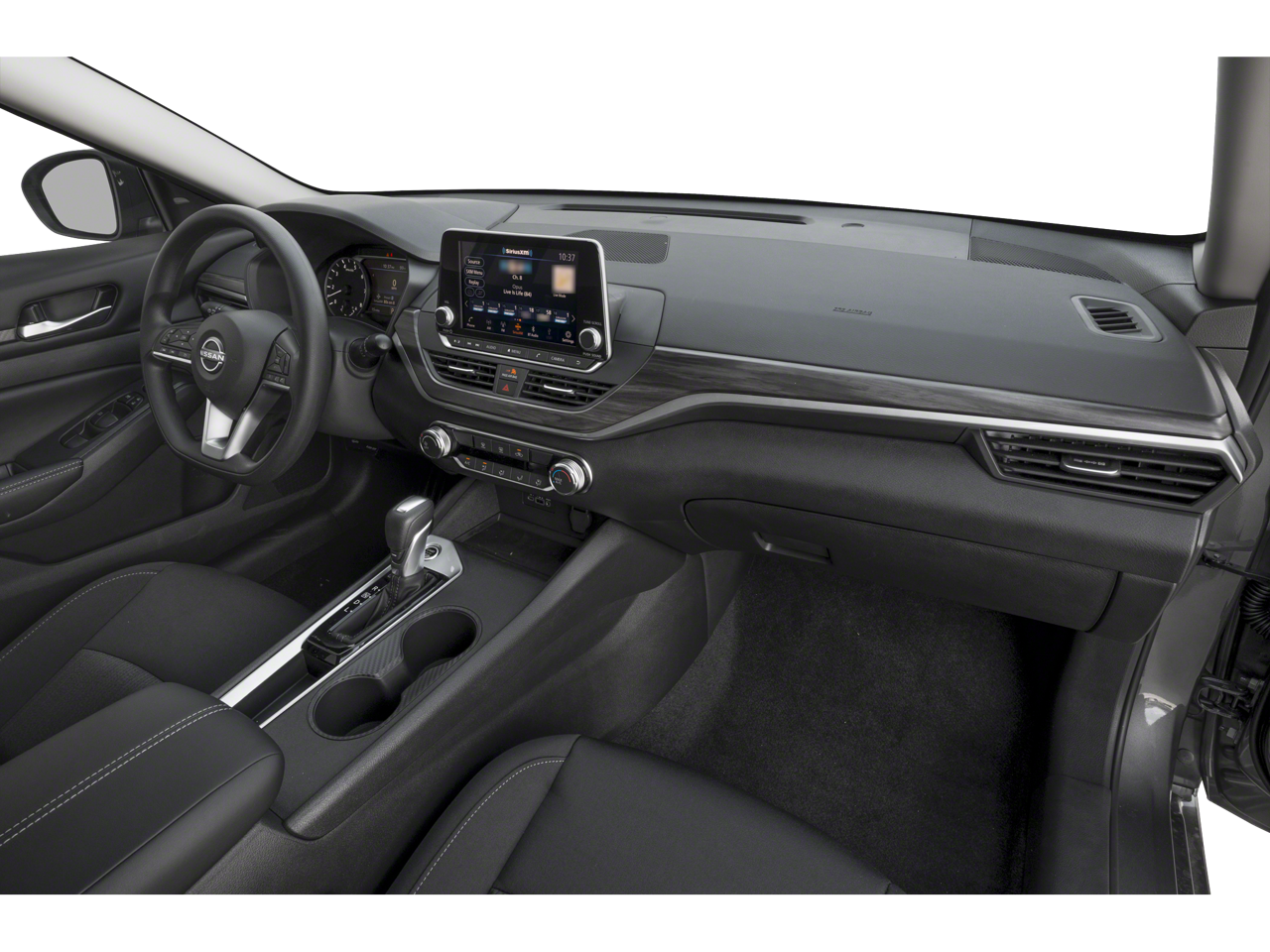 CVT with Xtronic, 17 Machined Alloy Wheels, 4-Wheel Disc Brakes, 6 Speakers, ABS brakes, Air Conditioning, Alloy wheels, AM/FM radio: SiriusXM, Auto High-beam Headlights, Blind Spot Warning, Brake assist, Bumpers: body-color, Cloth Seat Trim, Delay-off headlights, Driver door bin, Driver vanity mirror, Dual front impact airbags, Dual front side impact airbags, Electronic Stability Control, Floor Mats/Trunk Mat/Hideaway Net, Four wheel independent suspension, Front anti-roll bar, Front Bucket Seats, Front Center Armrest, Front reading lights, Fully automatic headlights, Illuminated entry, Knee airbag, Low tire pressure warning, NissanConnect featuring Apple CarPlay and Android Auto, NissanConnect Services Powered by SiriusXM, Occupant sensing airbag, Outside temperature display, Overhead airbag, Overhead console, Panic alarm, Passenger door bin, Passenger vanity mirror, Power door mirrors, Power driver seat, Power steering, Power windows, Radio data system, Radio: AM/FM Audio System, Rear anti-roll bar, Rear Parking Sensors, Rear reading lights, Rear seat center armrest, Rear side impact airbag, Rear window defroster, Remote keyless entry, Security system, Speed control, Speed-sensing steering, Speed-Sensitive Wipers, Split folding rear seat, Steering wheel mounted audio controls, Tachometer, Telescoping steering wheel, Tilt steering wheel, Traction control, Trip computer, Variably intermittent wipers, CVT with Xtronic.